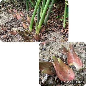 そろそろかなぁと家の裏へ見に行ったら、あるわあるわびっしり出てました🌱🌱