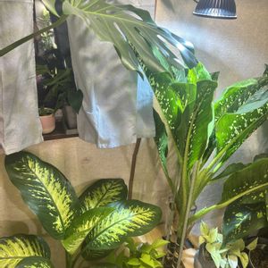 ディフェンバキアリフレクター🪴 ディフェンバキアサブライム🍋🟩 置き場所問題から和室で管理していたディフェンバキア大株さん達🪴 クーラー無し窓全開+サーキュレーターの環境なのですが、連日の30℃オーバーでバテ気味な様子だった為リビングに避難💨 リビングが完全ジャングル化しちゃいました(笑)夏はこのスタイルしかないなぁ🌴🌴🌴