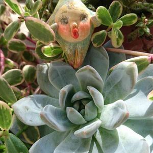 🏷️オケツの日 🏷️納涼オケツ祭り 土から生まれたチュッチ🌱のプリプリ🍑オケツ✨とカオナシさんで🎶 ダイソー サボテン🌵買いました♪ 頭が黄色くて可愛いの💓 粘土の鉢に植えてみました(´-ω-`)ダイジョウブカナ?