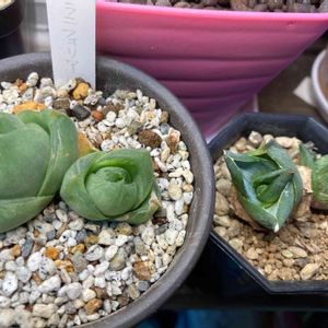 一気に寒くなりましたね! 冬越しどうしようかな?(¯―¯٥) 多肉は…屋外放置 ハオルチアは…縁側待機 アガベは…う〜んどうしようかな? 去年はまだ小さかったので縁側に入れましたが今はもう5号鉢(笑) もう縁側スペースが無いので屋外で(爆笑) 大丈夫かな(¯―¯٥) 最近のマイブーム(笑) 多肉のようなロゼット?のような形のハオルチアにハマってます(笑) オブツーサ系のブームは過ぎました(爆笑) ①プラ二フォリア花時計 透き通るような薄い緑と白のコントラスト! いや〜キレイですo(≧▽≦)o ②宝島 ちょっと肉厚で長めの葉っぱがカッコいい(≧∀≦) 真っ白な子株も出てます! 俗に言う幽霊?(笑) ③斑入りシンビフォルミス まだ小さいですがぷくぷくで可愛い((o(。・ω・。)o)) 縁側待機組🪴がどんどん増えて、おふくろに洗濯物が干せん!と文句を言われてる今日この頃(爆笑)