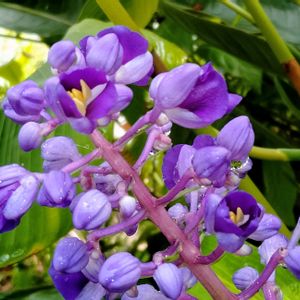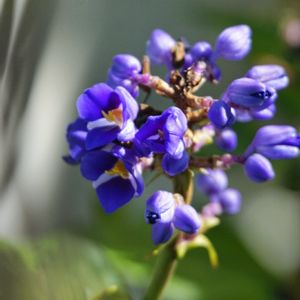 【ディコリサンドラ・ティルシフロラ】《ツユクサ科》 花言葉 「素直さ」「1日だけの恋」 「豊かな心」「慕われる愛」 別名 大立唐草(オオタチカラクサ) 木立紫露草(コダチムラサキツユクサ)ブルー・ジンジャー 花期は9~11月頃で、茎先に総状花序を出し、青紫色の花を咲かせます。 花は萼が3枚、花弁が3枚。 夕方になるにつれて 花の香りが強く広がっていく。
