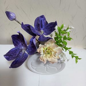 咲きはじめました🤗💕 綺麗な色💜 2輪だけですがすっご〜く嬉しいです😆🎶 ②手のかからないチビちゃん❣️ ポツンと一輪開花❣️蕾もありますのでこれから楽しめます。 ③大小大きさが違いますがなんとな〜く似てますね。 ④昨年ギガンティアと一緒にご購入しました。時々葉っぱが黄色くなって心配、でもいつの間にか元気ぽっくなったり、これで良いのかどうか掴めない‥ 黄色のお花が咲くらしい🌼けど いつかみられるかなぁ🤔