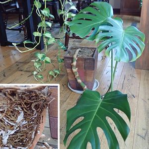モンステラ鉢増し 我が家のモンステラアダンソニー鉢増ししました🌿名古屋のグローバルゲートのgarageで購入したのですが、一年でかなり大きくなり車に載せ持って行くのも大変だなーと思っていたら近くの玲子ガーデンファームさんが購入店でもないのに植え替えしてあげるよーと言ってくださったのでお願いしました。凄い根詰まりしてました💦玲子ガーデンファームさんのご主人さんは支柱まだ要らないんじゃ無い?との事でしたが、Amazonでココナッツ支柱🥥ポチった🔘のが届きました。YouTube先生でお勉強してココナッツ支柱🥥立ててみようと思います🌿🌿🌿 心優しいGSユーザーの皆様、ココナッツ支柱🥥の立て方、何かアドバイスありましたらよろしくお願い申し上げます。(*☻-☻*)🔰🔰🔰