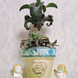 ①元はのりよさんからいただいた、カランコエウェーブ😊✨ ウェーブがかかっています❗😃 さかなっぴぃさんからいただいた、金色の天使と一緒に❣️ ②天使になりたいウェーブも、羽をつけてみました🎵👼🪶 ③夏に調子を崩したけど復活してきたビカクシダ💕 レオのママさんからいただいた、薔薇の帽子を被ったキューピーちゃんと一緒に❣️ 🏷️天使の日 🏷️毎月4日はシダの日 参加します❕😄