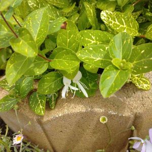 おはようございます♡ 🏷今日のお花❤️スイカズラ☘️⋱⋰ ⋱⋰ ⋱⋰ ⋱⋰ ⋱⋰ ⋱⋰ ⋱⋰ 右下の 紅葉が 🏷(スイカズラ)ゴールデン ハニーサックル⋱⋰ ⋱⋰ ⋱⋰ ⋱⋰ ⋱⋰ ⋱⋰ ⋱⋰ ⋱⋰ 花が未だ 咲かないんですが、咲けば 妖艶な香りかなー こちらは 過去picですが 今朝も 紅葉の ツルが支柱をスルスル登ります 春~秋は 黄緑の斑入り葉っぱで 虫つかないし 花瓶さして 根っこが直ぐでます! 優秀👏 今週もよろしくお願いしますm(_ _)m🤗 アダルトチームよろしくです❣️