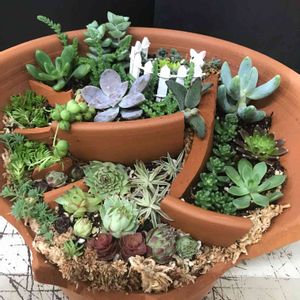 お店のイベントで フェアリー🧚♀️ガーデンを作りましたヾ(๑╹◡╹)ノ" 成長するので ちょっと隙間開けなきゃなんだけど ついついチマチマいっぱい入れてしもうた(^◇^;)💦