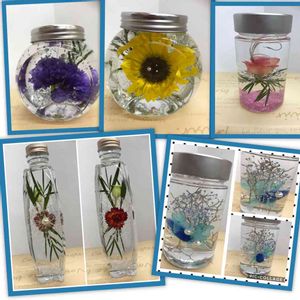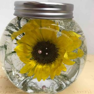 ひまわりのハーバリウム🌻 ま〜るい瓶に閉じ込めて見ましたヾ(๑╹◡╹)ノ"