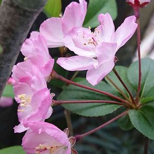 家の花海棠が咲き揃ってきました。 この薄いピンクの花🌸がお気に入り💕 まだ木は1.8㍍程もっと大きくなるのが楽しみ💓