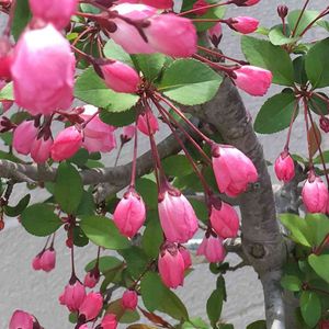 可愛いピンク☺💕 実は色が上手く写ってませんが💦 まだ全て蕾の状態でしたが… 桜とも違う🤔❓ ✼••┈┈┈┈••✼ ハナカイドウ 花海棠 と教えて頂きました☺ 漢字の名が似合いますね🌸 ご回答して下さった方々 ありがとうございます🎶