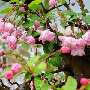 ぶれてししまいました 実家の花海棠としだれ桜 先に蕾を付け始めたのは花海棠さん。 遅れたしだれ桜さんが先に咲き始めました。 この花海棠さんはかれこれ20年。地植えしていたものを 引っ越す時にでっかな鉢に植え替え。 毎年 母を楽しませてくれます。 母のお気に入り✨