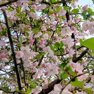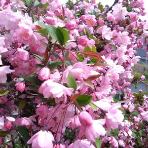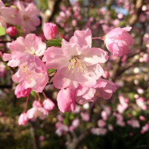 カイドウ(海棠)が咲いていました。 ハナカイドウ(花海棠)ともいいます🌸 桜が咲き終わってから咲くと思っていましたが、今は同じ時期に咲いています🎶✨ ピンク色💗がとてもきれいでした💕😃