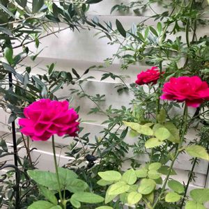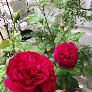 バルコニーのこの辺りは薔薇コーナー🌹 大きな薔薇が目立っていますが、手前には実はチビ苗達が蕾を付けて開花を待っています💕 順調に育ったら今年は6号角鉢にはしたいなぁ❣️ 今年は薔薇だけでなくてオルレヤ、サルビアなんかも一緒に並べてみました。お庭にいる雰囲気を味わってみたいです😊
