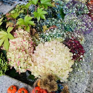 札幌諏訪神社⛩花手水 秋バージョン🍁 秋色の紫陽花に今日から キイチゴとかすみ草が追加