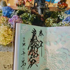 札幌諏訪神社⛩花手水 紫陽花入れ替えたそうです🌸 切り抜きの御朱印 素敵でした🥰