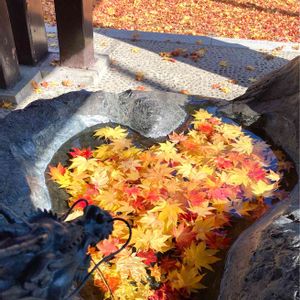 月寒神社⛩ 花手水は🍁 周りも🍁だらけ