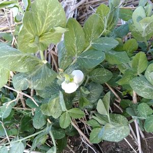 庭の絹さやえんどうが咲いてきました🌸 まだ背丈が小さいのに少し早い気がします🤔今年もたくさん収穫出来ますように🙏