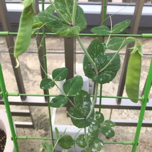 雨が続いたせいか絹さやがうどんこ病に😧 まだまだいけるかなぁ.