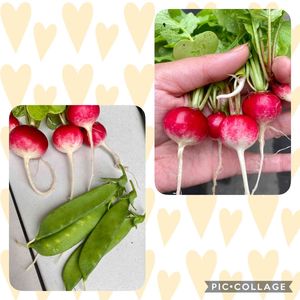 久々に満足なサイズのラディッシュ収穫! なんて…なんて可愛い色なの…🥰 絹さやも採れたので、明日はお味噌汁に入れようかな?それともサッと茹でてラディッシュと一緒にサラダにしようかな?😎