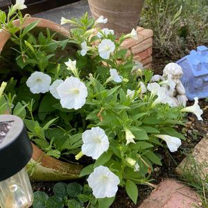 サフィニアさん🤍 割れた鉢からこぼれるように…って仕立てたかったのに😖 ガーデニング なかなかうまくいかないさ😂