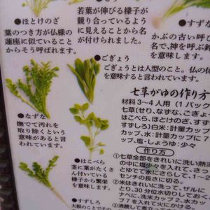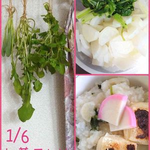 1/7日は、七草の日。 お正月のごちそうなどで、疲れた胃腸をいたわって、この日に七草粥を食べることで、新年の無病息災を願う行事です。 この写真はお出かけ先で撮影しました