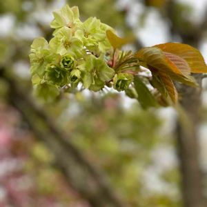 今日は珍しい緑色の桜🌸「御衣黄桜(ギョイコウザクラ)」を見てきました😍💖 ソメイヨシノが散った後に咲く桜で、サトザクラの品種の1つです。 開花したばかりの花は、淡い緑色で、徐々に黄色に変化していき、やがて花びらの中心部が赤く染まっていくのが特徴の桜です🤚