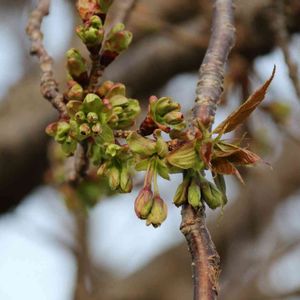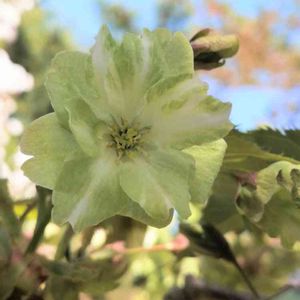 御衣黄桜(ギョイコウザクラ) 散歩途中の道路脇で、見かけました。 緑の桜です。 もう少しで、開花しそうです。