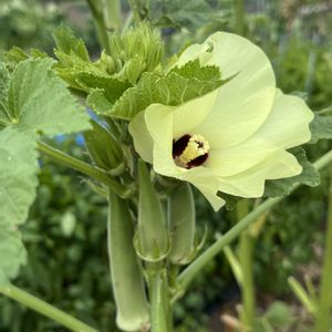 今日のお花 オクラ 立秋 お墓参りに行って来ました 駐車場の隣の畑にオクラ畑が 入道雲が出てました帰りに買ったオクラ一袋100円