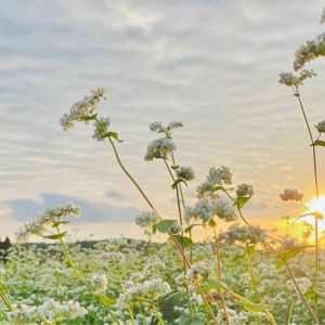 ✨そばの花✨ 今日の休日は パラグライダーの体験🪂 その帰り道、夕日に染まったそばの花✨ あまりにもキレイなので 🚙降りて撮ったど〜😆✨ 美しかった〜( ⸝⸝•。•⸝⸝ )ෆ̈♪♬
