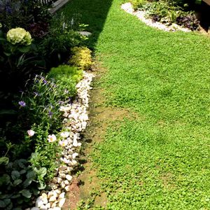 おはようございます 久しぶりの蒸し暑さのない晴天🌞になりました でも九州地方ではまだ雨が降り続いているようですが、心配です… 昔、東海豪雨を経験しましたが、その時は何十年に一度と言われていた豪雨⛈ 近年では毎年何処かでおきています。 気候が変わってしまったんでしょうか⁈ さて、我が家の残り半分の緑の絨毯🌱クラピア🌱がこのところの雨☔️と暑さ💦で広がってきました。 踏み踏みしないとワサワサしてきてしまう🐾