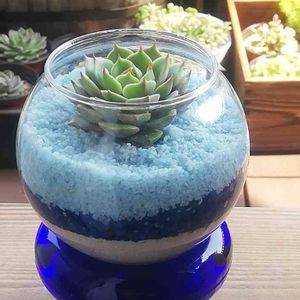 ゴーラムは、不気味な雰囲気にしたかったので、カラーサンドを蒔きました。ちなみに鉢は焼酎用のグラス。これもリサイクルショップ出身。