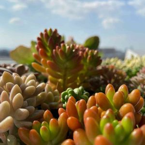 只今セダムちゃん達、日向ぼっこ中☀️ AM9時…あまりの暑さに撤収〜💦 ホントに10月なのか😵💫