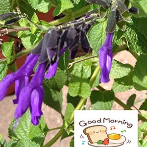 『メド セージ』 夏の終わりに 切り詰めたのに グングン成長しまた花を 咲かせてくれました‼️ この子は本当に強いです‼️ おはようございます(*゚∀゚)っ 今日は☔ 昨日、芋掘りしておいて良かったわ‼️ 今日も元気に 頑張りましょうね‼️
