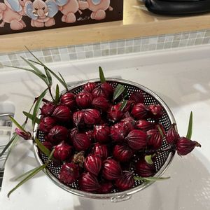 去年沖縄で買い求めた ハイビスカスローゼルの実。 塩漬けの味が忘れられず メルカリでどっさり購入しました。 萼が青くて少し早熟でしたが 塩漬けと果実酒を作りました。 ②塩漬け用は萼と苞を✋️で剥きました。 ③④⑤果実酒用は、箸技?!で種を押し出して取り出しました。 この作業がイチバン嵌りました🤭 1ヶ月後が楽しみです🍷❤