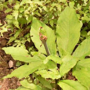 マムシグサ 色付き始めました 花畑で やたら目に付きます😉 サトイモ科の テンナンショウ ウラシマソウを見てみたいです😃 また雪もちそうも ご近所にあります😲