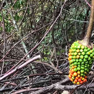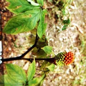 テンナンショウの仲間。マムシグサの実 まだ青い。 花もインパクトあるけれど、実も存在感ありますね、赤く色付くともっとインパクトですね。