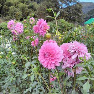 能勢、妙見山のお参りの帰りにダリア園に行きました🚗 370種類もの満開のダリア🌼 好きな花を選び。写真を撮り。記念撮影をして。 曇り空が、パァ~っと晴れる時があって、「今日は一番の見ごろですよ」と、言われました(-^〇^-)