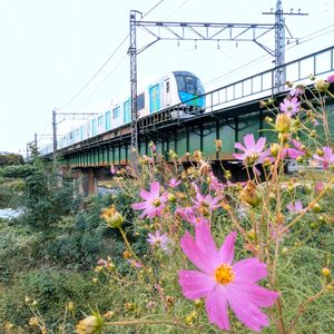 のんびりと川沿を、 ワンコとお散歩その③ 風で 花が揺れて ピンボケになってしまった^^; お散歩途中だし 次の電車を待つ程でもないかなと 秋ですね