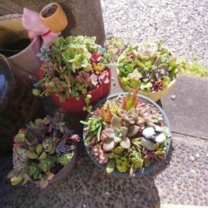 こんばんは(*´▽`*) 週末に娘と寄せ植えしました。 たぶん初めてじゃないかな、 2つ木のカップがあったから、 「ママ一緒に寄せ植えしよう」 と娘から誘ってくれて❤ 2人ワークショップやりました。 やっぱりピンクを娘が選び、それに合う苗を選ばせました。 贅沢なlier苗から😁 娘のほうが高い苗を選んでます😆 寄せ植えは難しかったから、ほとんど私が寄せちゃったけどね。 娘も楽しんでくれて、出来栄えに満足💕 さほど多肉には興味が持ってない娘だけど、 少しは好きになったかなぁ☺ 娘のご指定で(笑)、これを200picにしました。 これからもよろしくお願いします😊 木の鉢は杢さん作です♡