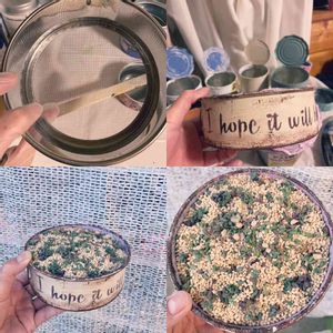 100均のふるいをリメイクして 昨日、減ってしまったパープルヘイズを 解体してパラパラっと葉挿ししました👍 このふるいにこんもりになってくれます様にぃ♡