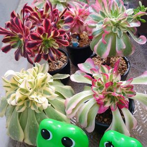 おはようございます ☀️ 🪴 アエオニウムたちに水やり 👀嫡芯グリグリしたアエオニウ 寒くなるほど綺麗な色になってきましたね いい感じのブーケ💐形はいろいろです 🏷️カエル仲間 🏷️毎月6日はカエルの日 🏷️斑入り見つけ隊♪ 参加します👍