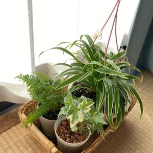 おうちで楽しむ用のBOX。 オリヅルラン?は最近の日差しで少し葉焼けしてしまったので、カーテン越しに置いてみました!