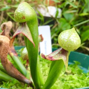 Darlingtonia californica ダーリングトニア カリフォルニカ 前々から憧れていたのですが、育てるの難しいと聞いていたので、手を出せずにいました。しかし、先日の五島園芸さんでの即売会で発見、我慢できず購入してしました。 ヘビのような草姿がとてもかわいい! 高山ネペンテスの水槽に同居させながら様子を伺っていこうと思います。