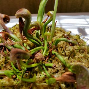 ダーリングトニア カリフォルニカ インビトロ由来の個体 ようやく蛇の形が出来た時の様子 水苔と相まってとっても愛おしい