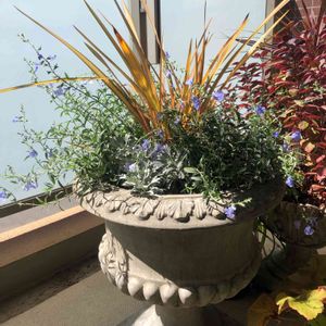 スカイブルーとゴールドとシルバーの寄せ植え! 強弱は無いけど、エレガントに仕上げました笑 サルビア・アズレアは4〜6月にも咲く四季咲きってタグに書いてたけど、本当に咲くかな? 咲いてくれると嬉しい😆
