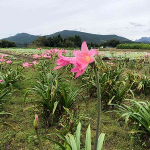 おはようございます♪ 青空が覗いています(^^) 秋晴れになるといいナ🎶 百合の仲間なのか彼岸花の仲間なのか? ピンクが綺麗でした🌿