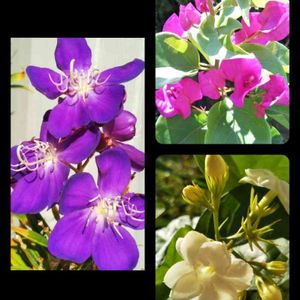 🌸満開の3種類🌸 ノボタンコートダジュール ブーゲンビリア マツリカ ノボタンはそのシべが 蜘蛛の足みたいなので スパイダーフラワーとも言われるのが納得ですね! ブーゲンビリアの花は何回目かの開花! マツリカはアラビアンジャスミンの事です! いずれも満開なので 満開の笑みの私🙋♀️