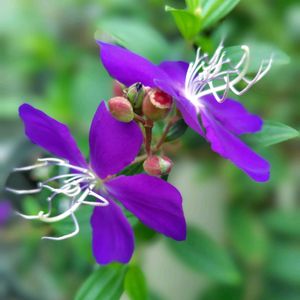 風に揺れる姿が美しい "ノボタン" ①、② 深い紫色が見事です💜 花弁の元が白く、雄シベも白く涼しげです(*^^*) しかも、カールしているのも魅力の一つ☺️ 長期間、次々と咲き続けて美しい姿を保ち続けています。 夏の水やりには気をつけて、冬の低温の対策としては鉢植えも有効だそうです🪴 撮影日は風が強く、なかなかシャッターチャンスが訪れません🌪️ 花名は色々です。 シコンノボタン、コートダジュール ボタン科、ボタン属