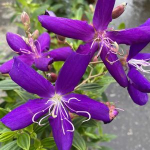 【野牡丹】《ノボタン科》 花言葉 「自然」「平静」「落ち着き」 「ひたむきな愛情」 別名 シコンノボタン スパイダーフラワー シコンノボタンは、ブラジル原産のノボタン科シコンノボタン属の植物です。 名前の由来は「紫紺色の野牡丹」で、アジアを中心に分布する別属のノボタンより、花色が濃い紫色であることを意味します。