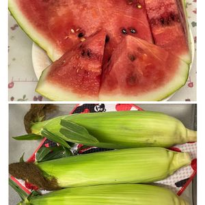 2picめ😊 私が作ったわけではなく、義父さんが畑で作りました。 (車で40分以上かかるところに畑を借りてます) いろいろ育ててますが、スイカ🍉もけっこう大きくて 甘かったし、とうもろこし🌽もおいしかったです。