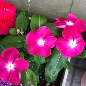 日日草(Madagascar periwinkle)(Catharanthus roseus)➰(セメントとセメントのの隙間から、生えています) ✴️お馴染みの日日草➰日日草の「隙間パワー」と、「生命のパワー」には、驚嘆しますよね。 キョウチクトウ科、ニチニチソウ属 原産地: マダガスカル、インド ⏺️キョウチクトウ科➰折ってしまった時の出汁にはご注意を。 🌕花言葉は「楽しい思い出」 ✴️他pic.:2020年1.9